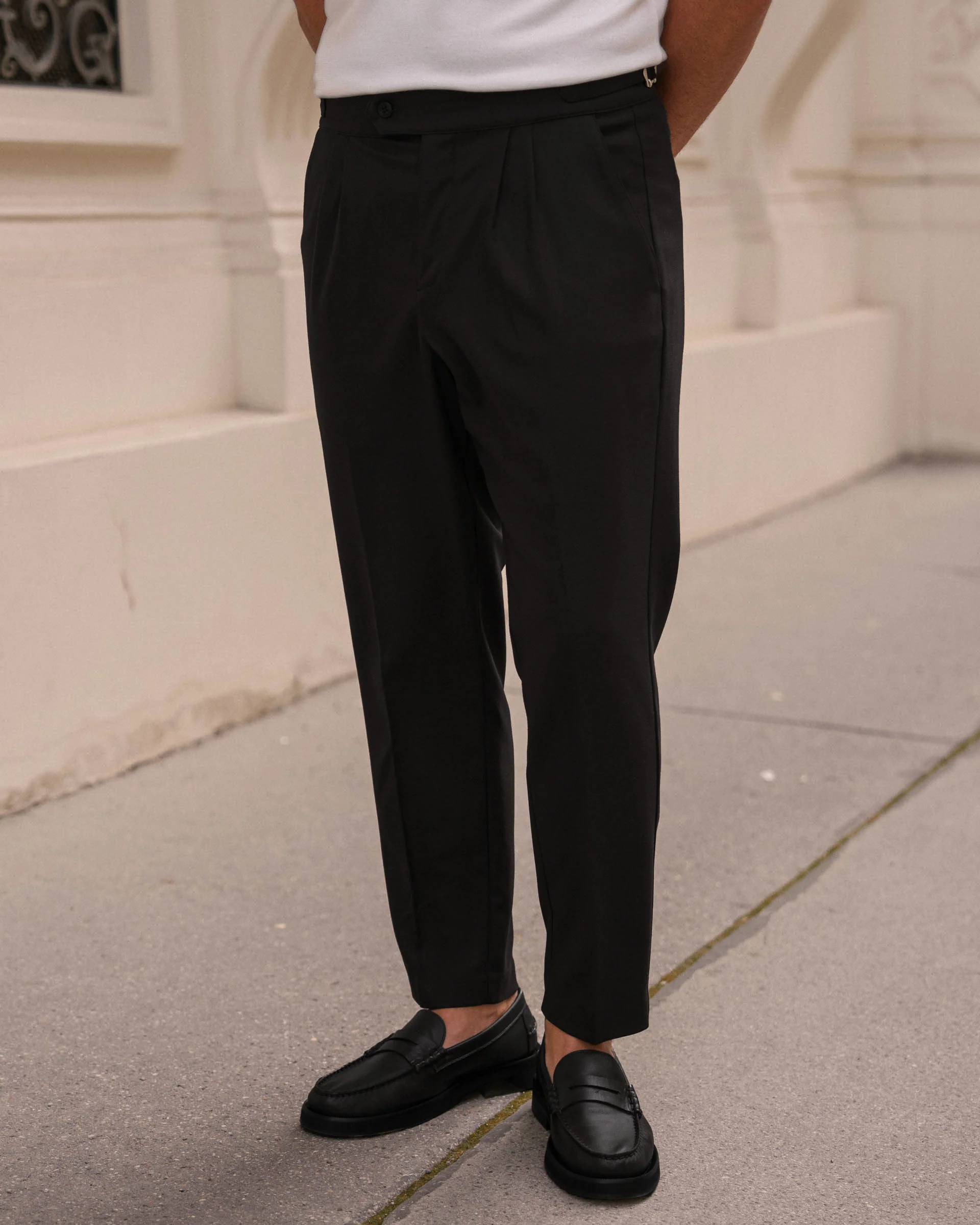 Buckle Pants – Clean, modern und individuell anpassbar. Diese Hose kombiniert zeitloses Design mit moderner Funktionalität. Die Passform sorgt für eine klare Silhouette, während das leichte, elastische Material optimale Bewegungsfreiheit bietet. Die seitlichen Schnallen ermöglichen eine flexible Weitenverstellung – ganz ohne Gürtel. Egal ob im Alltag, im Büro oder bei besonderen Anlässen – diese Hose ist vielseitig und bleibt immer stilvoll.