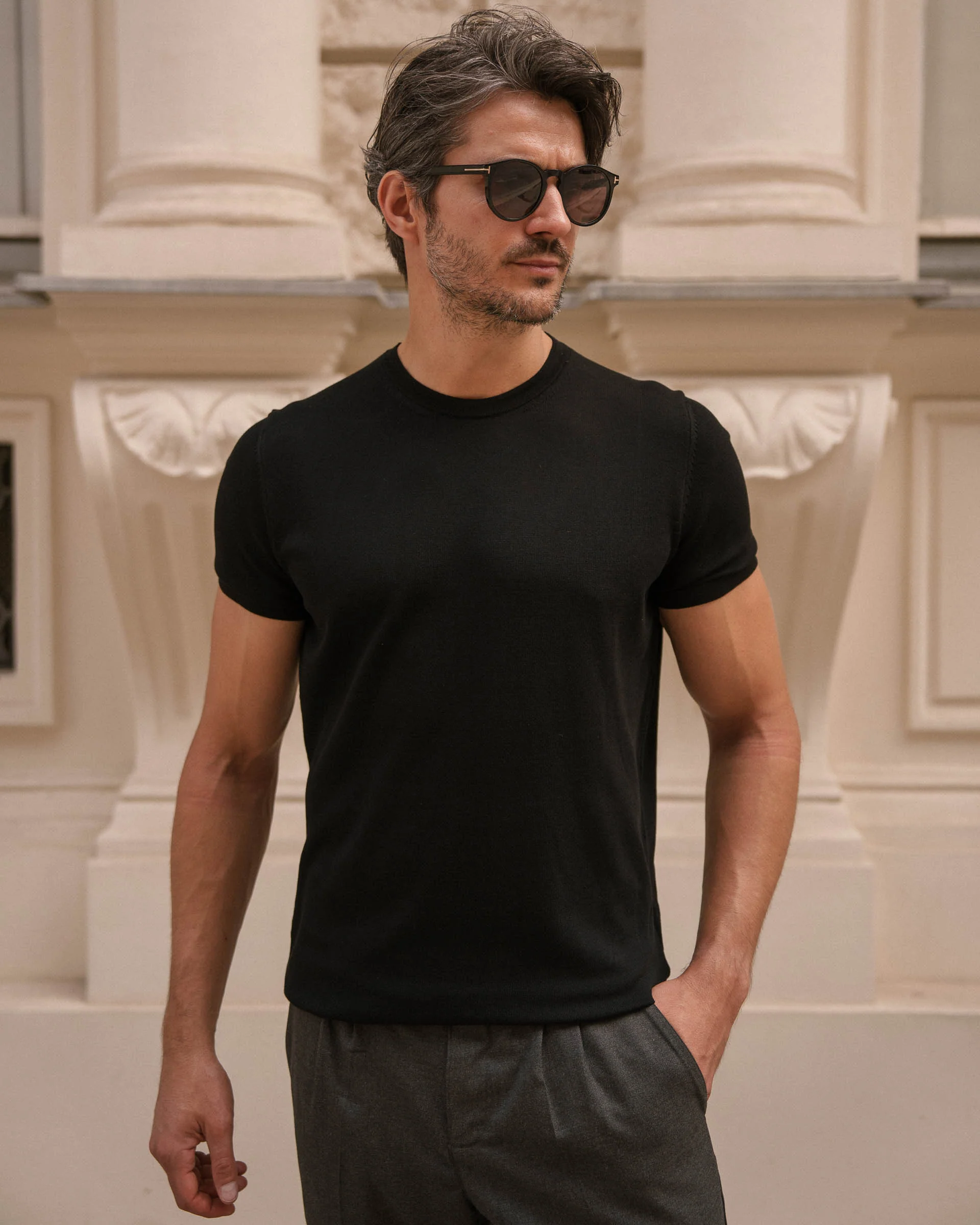 Knit T-Shirt – Minimalistisch, edel und ideal für jeden Tag! Dieses T-Shirt kombiniert zeitloses Design mit herausragendem Tragekomfort. Die spezielle Baumwolle bietet eine feine Struktur, dezenten Glanz und sorgt für ein kühles, angenehmes Gefühl auf der Haut. Perfekt für einen edlen Alltagslook.