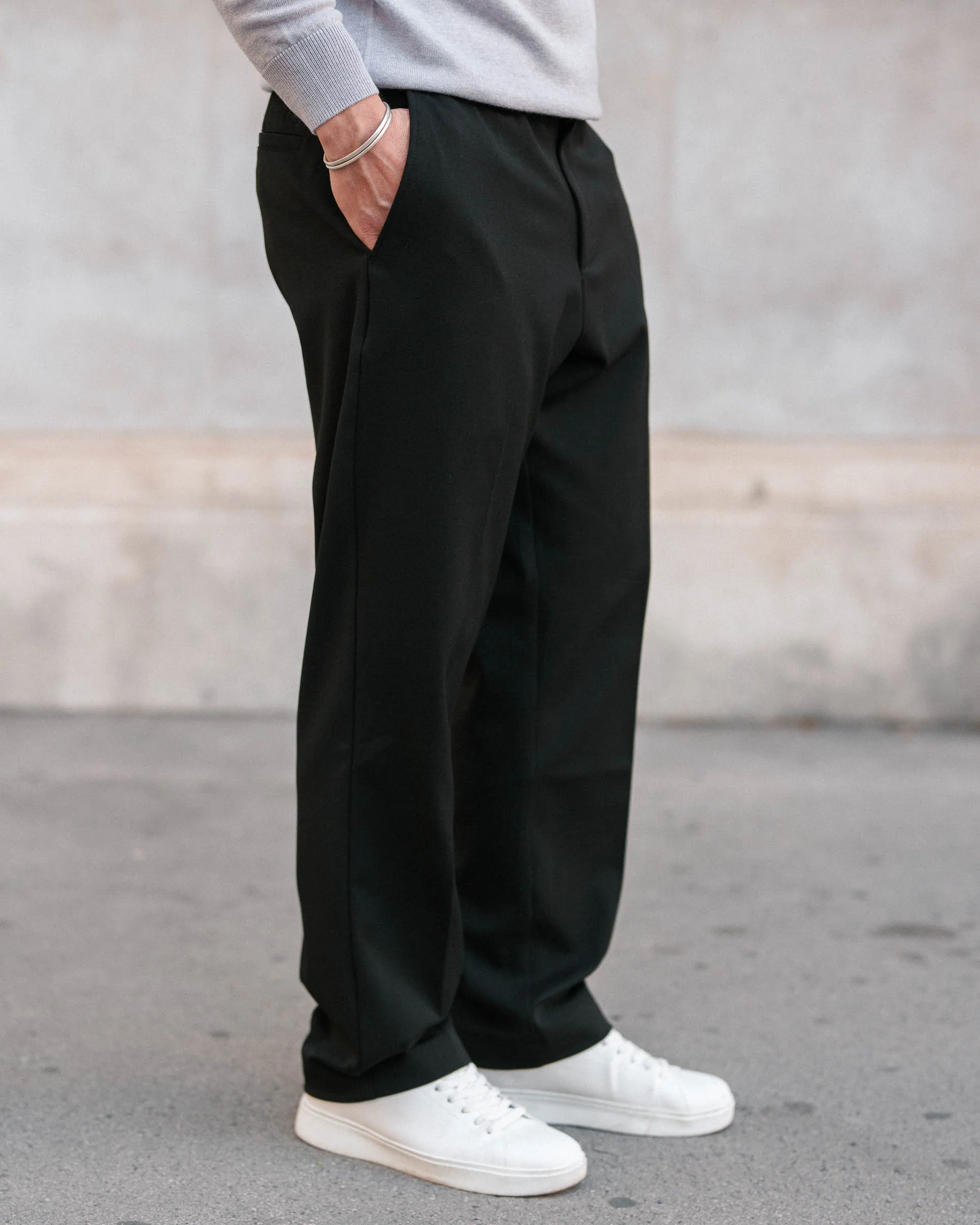 - Bund: Außen klassisch, innen mit einem elastischen Bund und Kordelzug für eine perfekte, individuelle Passform